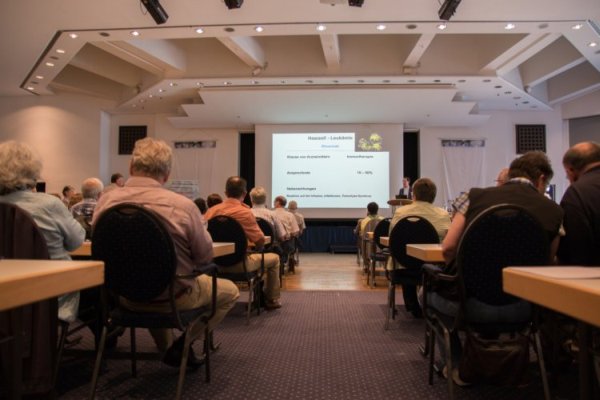 Foto: L. Garte Nach der Mittagspause und einer kurzen Mitgliederversammlung wurde die Tagung mit einem Vortrag von Herrn Ludwig Lübbers aus Münster zu den Neuerungen der Homepage der Haarzell-Leukämie-Hilfe fortgesetzt. Insbesondere der neue Mitgliederbereich wurde vorgestellt und auf die Hilfen für Haarzell-Leukämiepatienten zum Sozialrecht hingewiesen. Nach einer kurzen Stärkung begann der intensive Erfahrungsaustausch im großen Saal mit Schilderungen von Patienten und Berichten von Therapieverläufen und Belastungen durch die Krankheit unter der Leitung von Frau Bärbel Krause. Die Angehörigen trafen sich zeitgleich zu einer separaten Gesprächsrunde in einem Nebenraum mit Frau Janet Schäbler (Psychoonkologin) zum Informationsaustausch und zur Erarbeitung von Bewältigungsstrategien für Probleme beim Umgang mit der Krankheit. Der in den Pausen zwischen den einzelnen Vorträgen rege untereinander stattfindende Erfahrungsaustausch wurde beim gemeinsamen Abendessen im Hotel fortgeführt. Der Sonntag begann mit dem Vortrag "Was hab ich.de" von Frau Anja Bittner (Ärztin aus Dresden), der von Frau Krause vorgetragen wurde, da Frau Bittner kurzfristig verhindert war. Die Themen "Patientenverständliche Diagnose" und "Gute Arzt-Patienten-Kommunikation" fand großen Anklang. Danach traf Herr Prof. Bernhard Wörmann aus Berlin ein und begann umgehend mit seinem von allen Teilnehmern erwarteten Vortrag "Wie viel oder wie wenig Therapie braucht der Patient mit HZL?" An den Anfang seiner Ausführungen stellte er, besonders für alle neuen Teilnehmer, wie immer eine kurze Zusammenfassung der wichtigsten Aspekte und Grundlagen der Haarzell-Leukämie und ihrer inzwischen zahlreicher gewordenen Therapieoptionen. Anschließend ging er auf die neuesten Entwicklungen zur Therapie der HZL ein, vor allem zu weiteren neuen Therapiemöglichkeiten nach einem Rückfall. ![]() Foto: L. Garte Im Anschluss an seine Ausführungen beantwortete er wie jedes Jahr sehr umfangreich und ausführlich die zahlreichen und breitgefächerten Fragen aus dem Auditorium. Um ca. 14 Uhr endete die Veranstaltung und die Patienten und ihre Angehörigen begaben sich auf den teilweise sehr weiten Heimweg. Gut besucht war, wie immer, unser Büchertisch mit Broschüren und Veröffentlichungen zu medizinischen, psychologischen und sozialen Themen, die kostenlos abgegeben wurden. Insgesamt wurde die Veranstaltung von allen Teilnehmern sehr positiv bewertet, besonders die gemeinsame Unterbringung in einem Hotel, die einen ganz intensiven Erfahrungsaustausch ermöglichte. Für alle Mitglieder unseres Selbsthilfevereins, welche nicht kommen konnten und für alle Teilnehmer der Veranstaltung zur Erinnerung, gibt es in der nächsten Ausgabe des "HLH-Journal" (Mitgliederzeitung Nr. 10) wieder einen ausführlichen Bericht von der Tagung mit allen gehaltenen Vorträgen. Die Tagung wurde ermöglicht durch die finanzielle Förderung der
